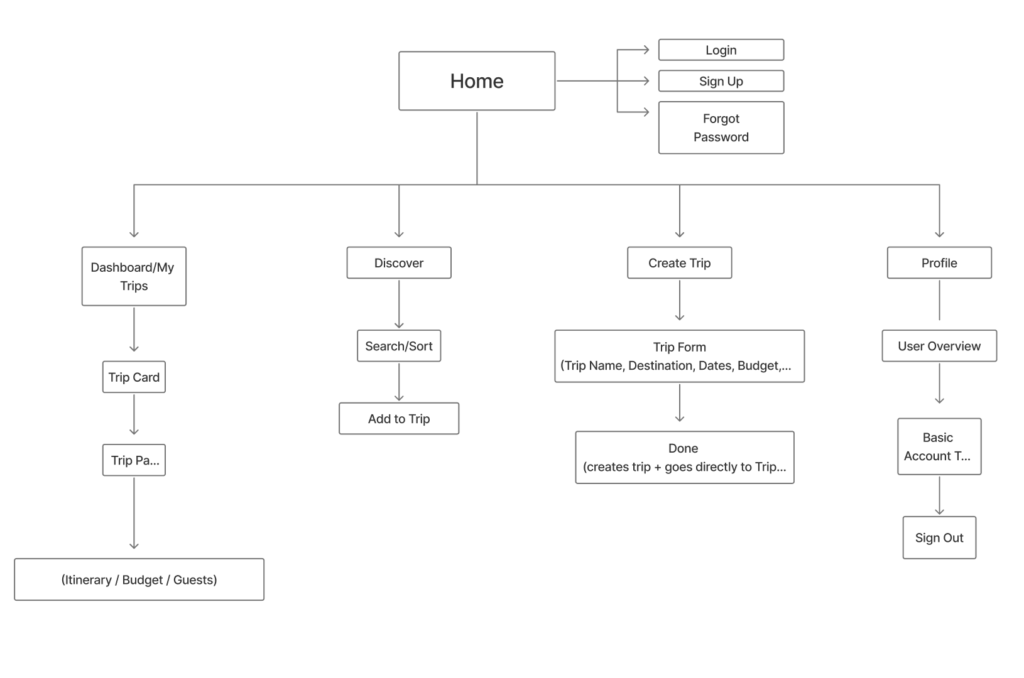 The goal of this project is to create a simple, collaborative tool that helps travelers organize their trip details, manage expenses, and collect planning ideas all in the same space. The app should feel easy to use, support group planning, and make the process less stressful from start to finish.