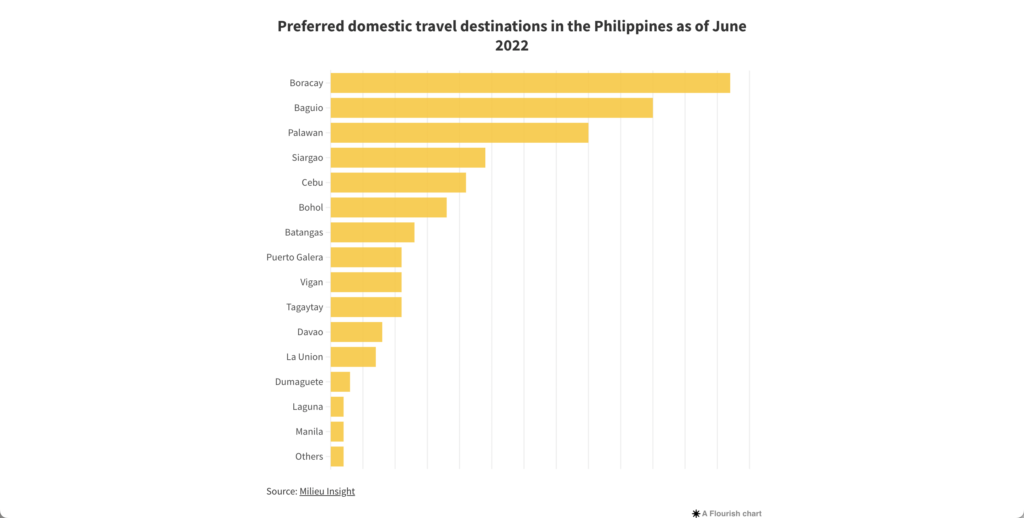 Flourish Chart (Popular Destinations): The first Flourish chart highlights the most popular tourist destinations in the Philippines, providing a visual representation of travel trends.